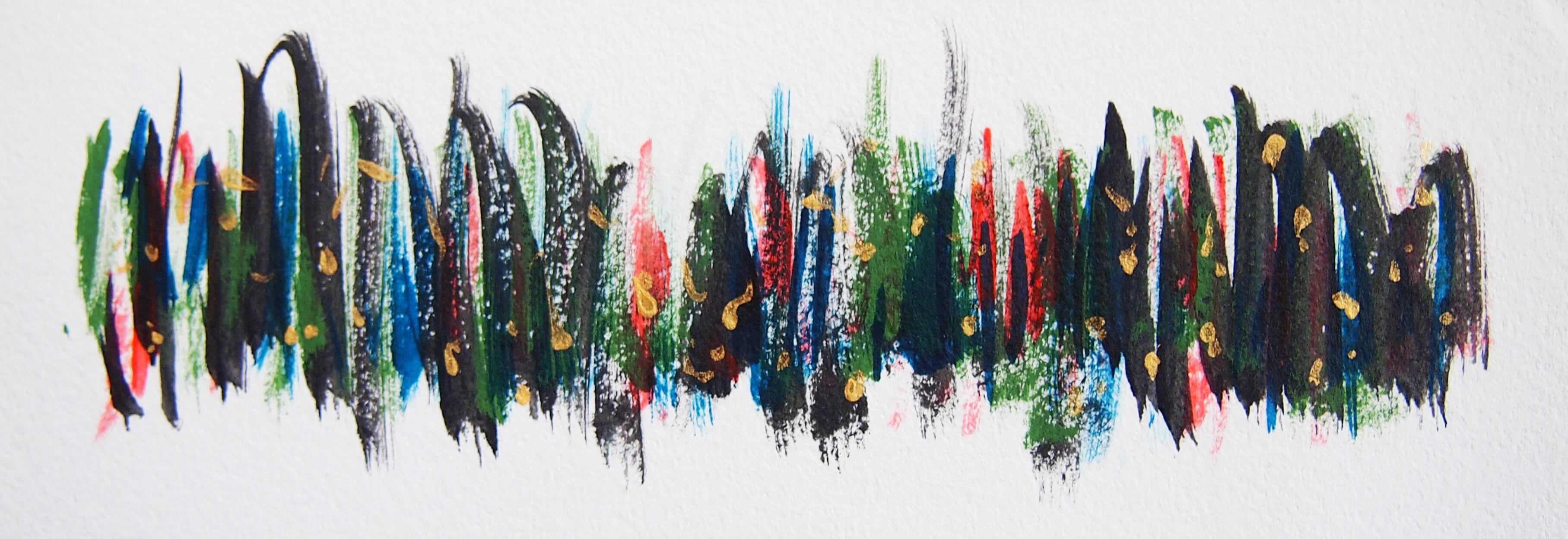 言葉を絞れば削ぎ落される世界が、わずかな色彩と線の重なりによって、豊かな余白を作り出している作品です。