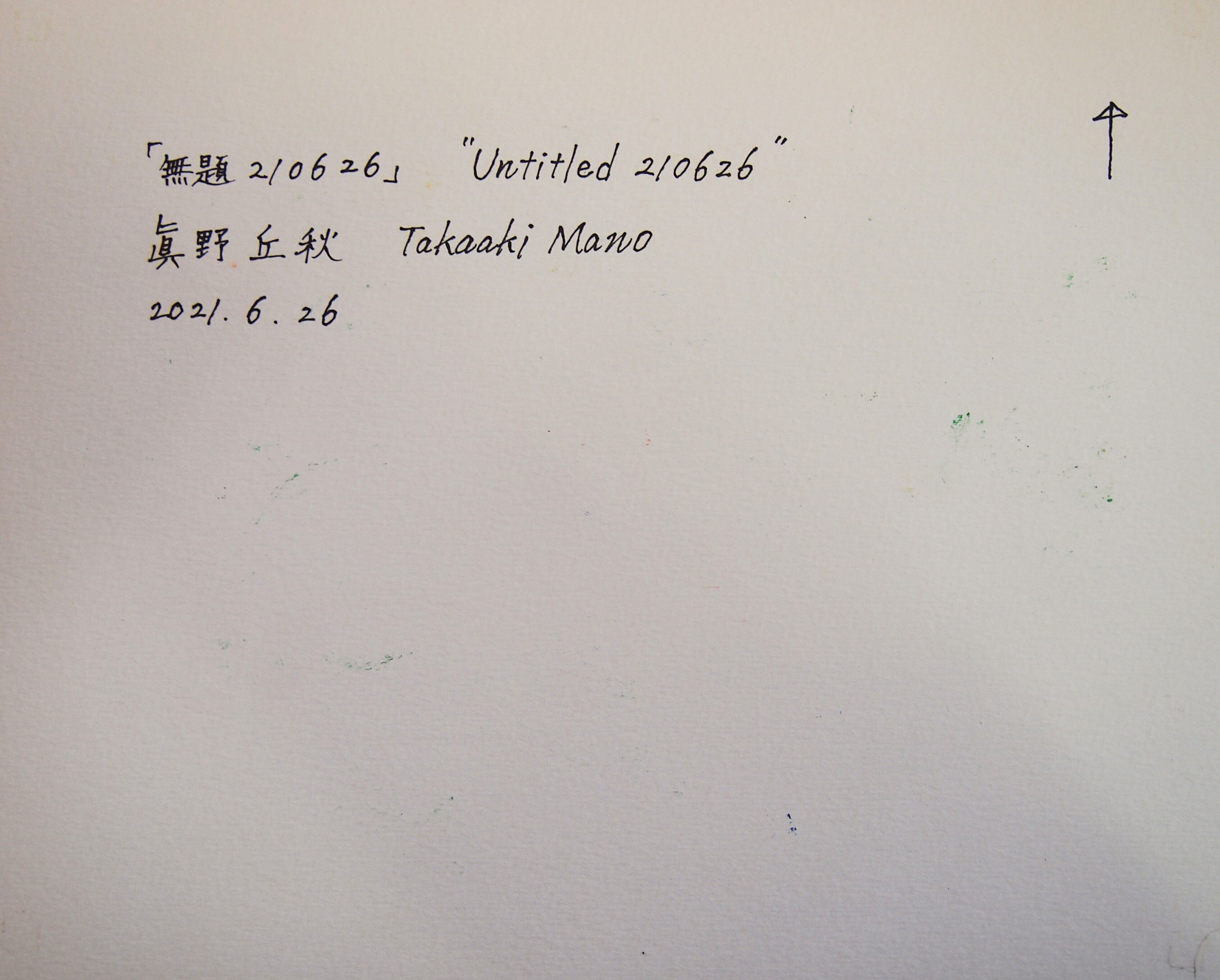 眞野丘秋(Takaaki MANO)による即興ドローイング「無題 210626」は、身体の動きと感覚の流れが交差する、色彩と余白の詩です。