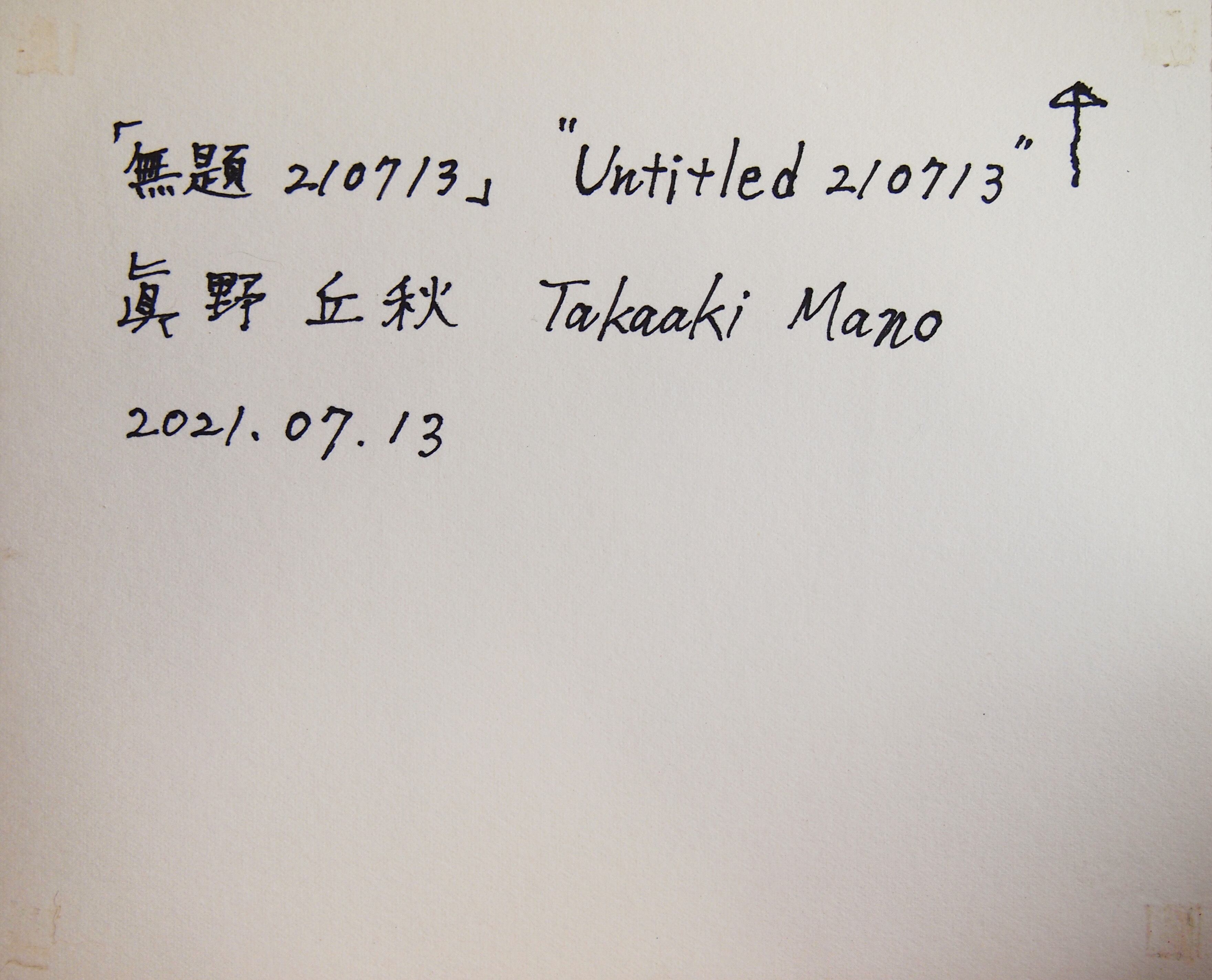 眞野丘秋(Takaaki MANO)による即興ドローイング「無題 210713」は、身体の動きと感覚の流れが交差する、色彩と余白の詩です。
