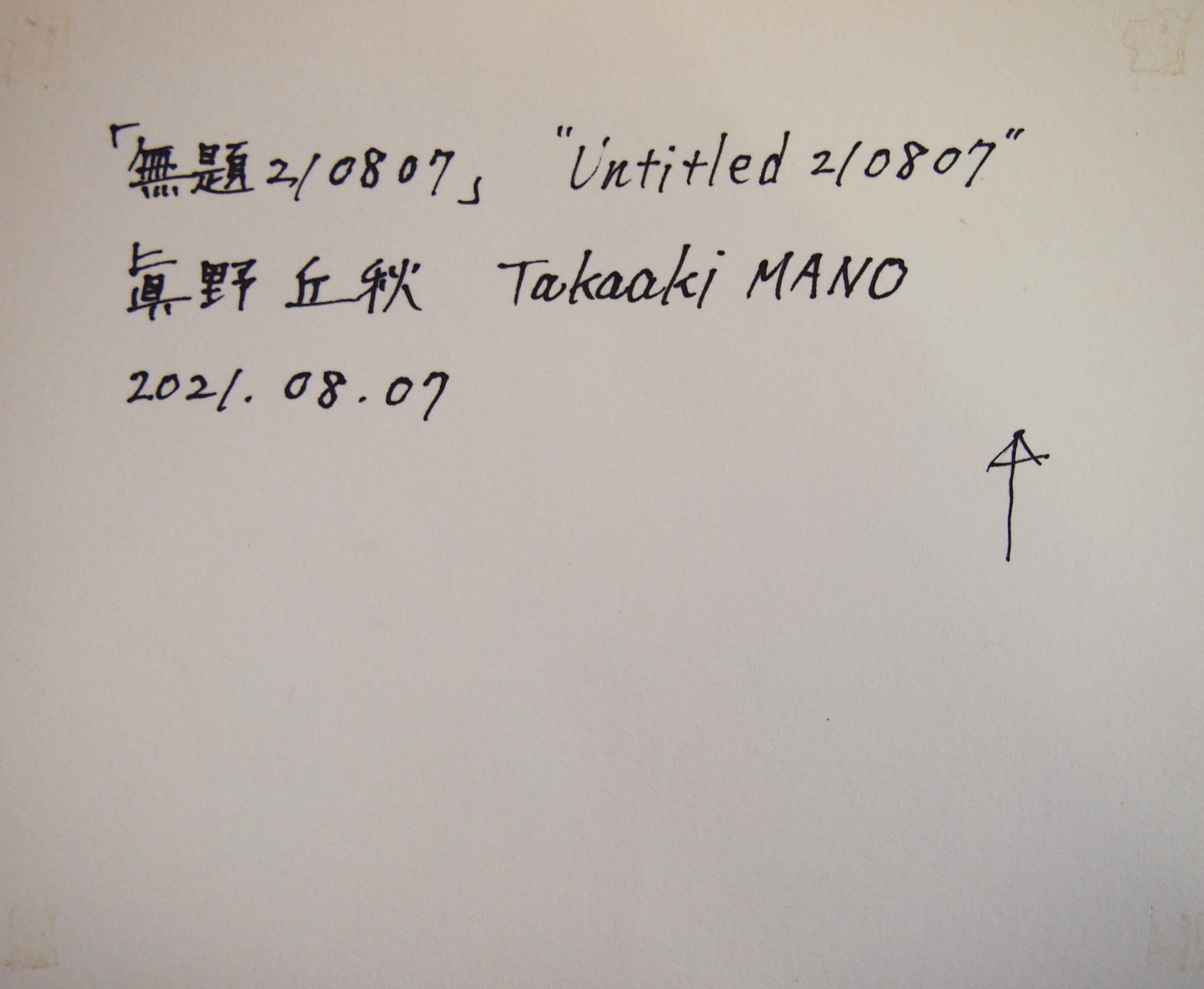 眞野丘秋(Takaaki MANO)による即興ドローイング「無題 210807」は、身体の動きと感覚の流れが交差する、色彩と余白の詩です。