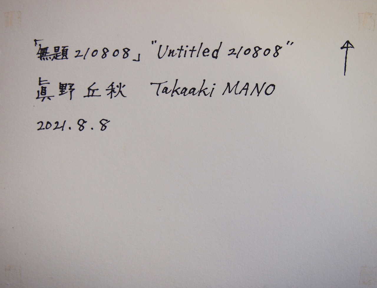 眞野丘秋(Takaaki MANO)による即興ドローイング「無題 210808」は、身体の動きと感覚の流れが交差する、色彩と余白の詩です。